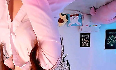 Beauty In White Lingerie And Shirt Passionately Ends Her Raw Pussy On Her Fingers