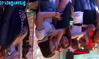 CFNM unexperienced girls suck a stripper at a CFNM party