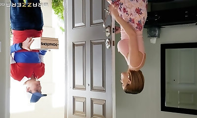 MILF slut Krissy Lynn seduces the delivery man and eats his jism
