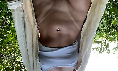 Young Girl with Micro Cutoffs and Bikini Disrobes on a Trail, I Think I Was Caught!