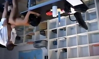 Bustyblack assistant back scuttled over her desk by the bosses white knob