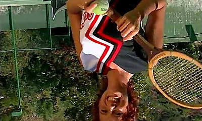 Sexy tramp on a tennis court loves to have her asshole filled up with massive dick