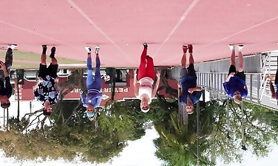 Gymnast with ample ass moaning in group sex with a group of bullies
