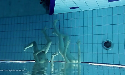 Cute teen chick Anna Netrebko swims naked with her Girlfriend