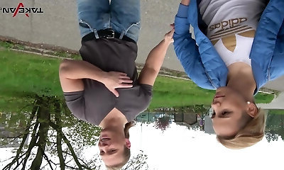 il suo biondo amico che aspetta la sua, mentre lei è la gola profonda cazzo-stick per contanti