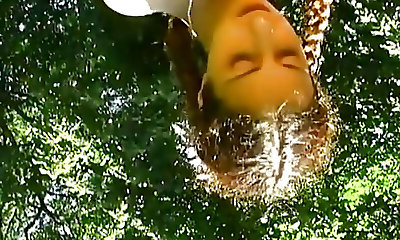 Black-haired TEEN DAUGHTERS HAVE THREESOME OUTDOORS