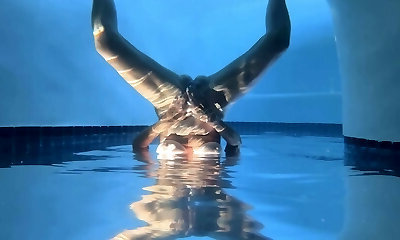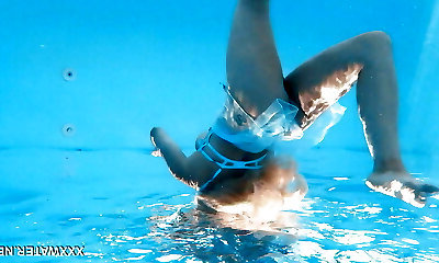Tiffany blonde perfect round booty teen swims underwater and undresses