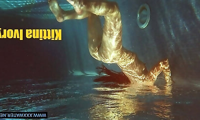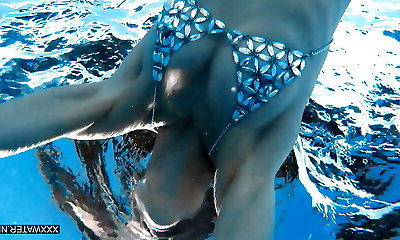 Super-sexy tanned babe in bathing suit Mary Kalisy shows spectacular underwater striptease