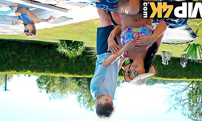 Hot booty babe Alice Sweet loves teasing and riding a cock by the pool