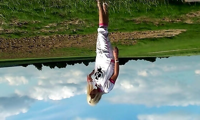 Beautiful girl Ryann in hot jockey uniform getting her asshole ate up by her fucker homie Voodoo outdoors.