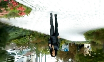 Smoking Super-steamy Brunette Milf in Latex Catsuit and Boots